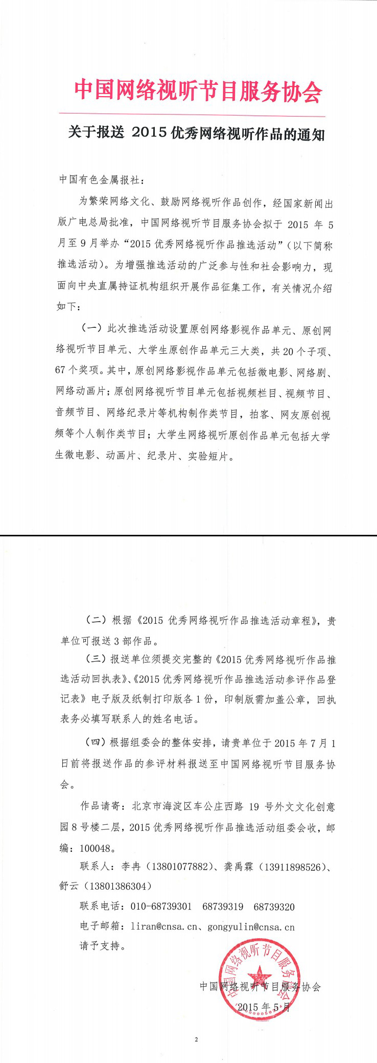 2015优秀网络视听作品推选活动章程